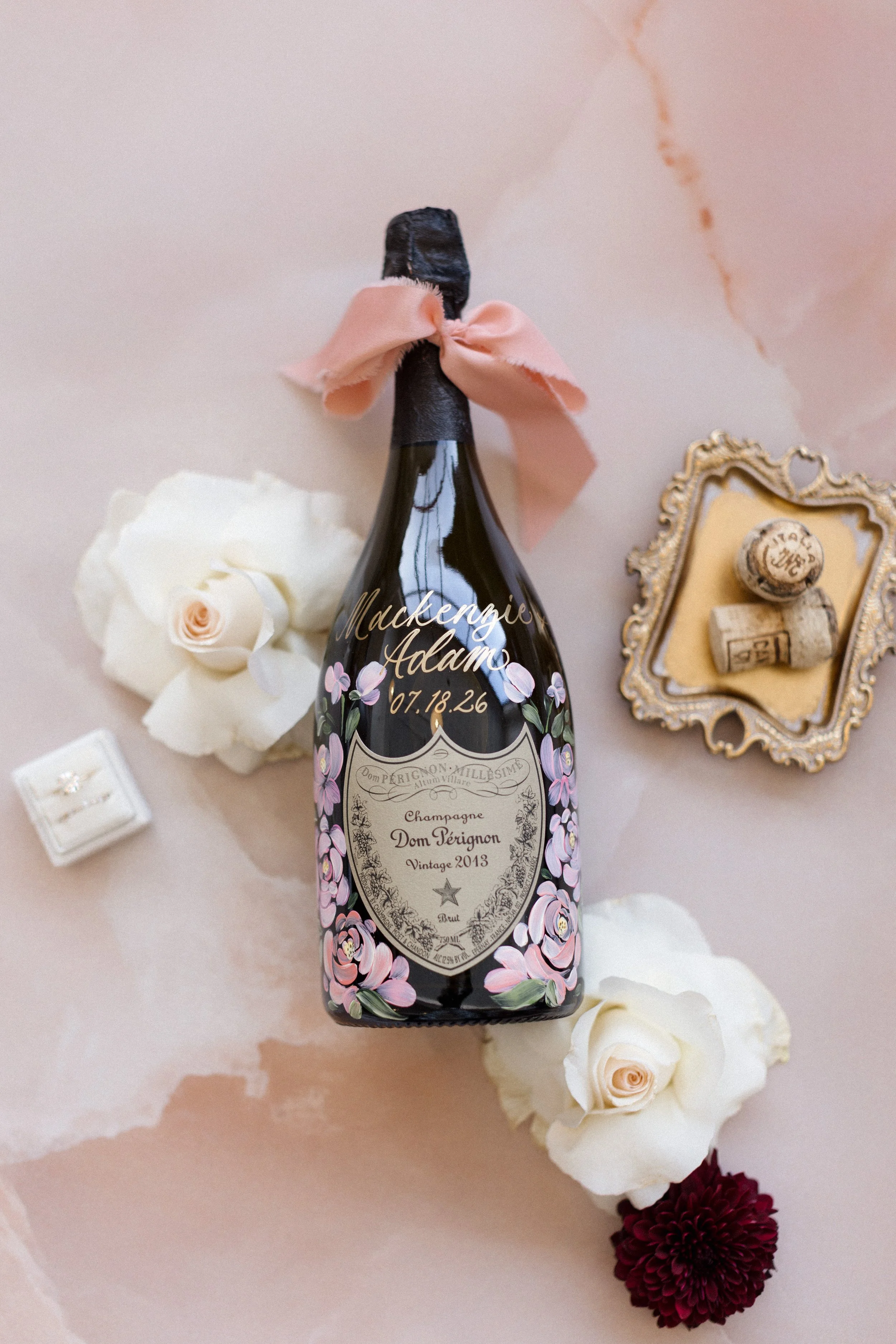 Hand-painted spirits and perfume bottles designed to celebrate life’s most meaningful moments. Bottles are carefully painted with custom lettering and florals creating a keepsake perfect for bridal showers, baby showers, engagements, weddings, birthdays or more. Champagne, fragrances, cosmetics, and other spirits are entirely customizable. Pricing is based off of the complexity of the painting starting at $75.00.